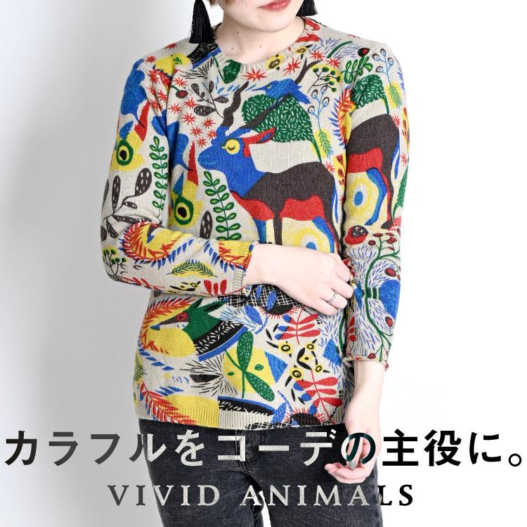 Susann D アニマル柄 総柄 ウールニットセーター レディースl Wbj2532 Pd2 2 Cs03 Ss07 Cs07 Ss09 クルーネックセーター 古着屋jam ジャム